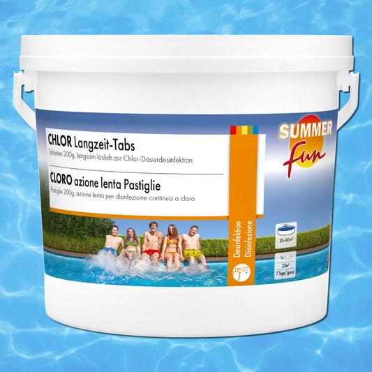 Pool Chlor Langzeit Tabletten je 200g, 2,4kg Eimer