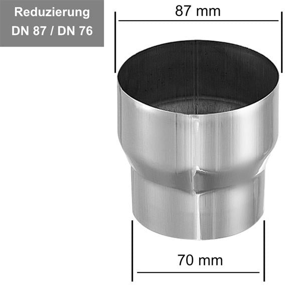 Beispiel: Die Reduzierung von 100 mm auf 87mm ist für ein DN 87 Rohr geeignet.
